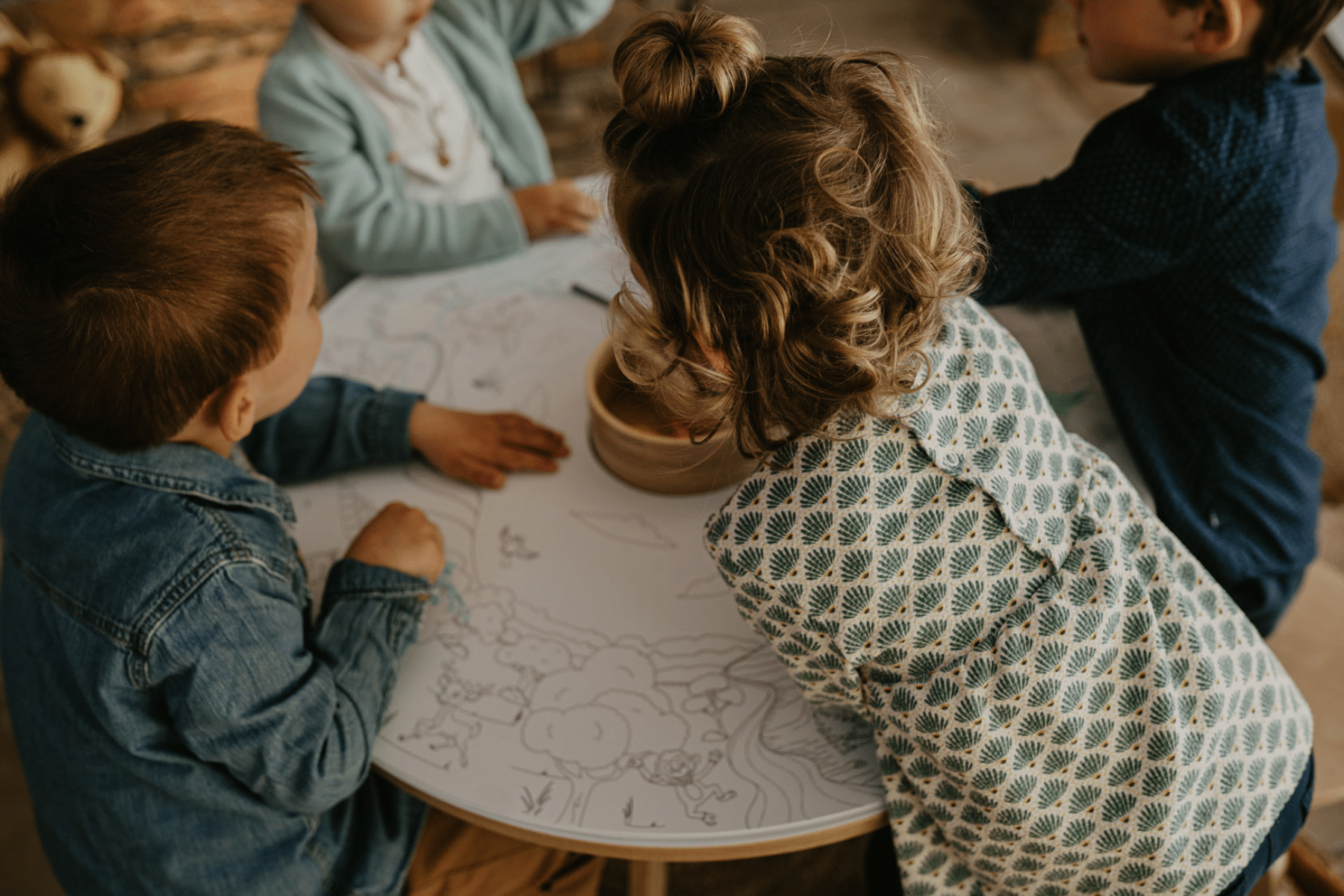 La Drawin’table est conçue spécialement pour les enfants. En effet, elle est une table enfant à hauteur adaptée (H48 cm), créant ainsi un espace propice à l’exploration et à l’expression artistique. Son design ergonomique permet aux enfants de s’asseoir confortablement et de se concentrer sur leurs activités créatives. De plus, sa surface est facile à nettoyer, ce qui facilite le travail des professionnels.
