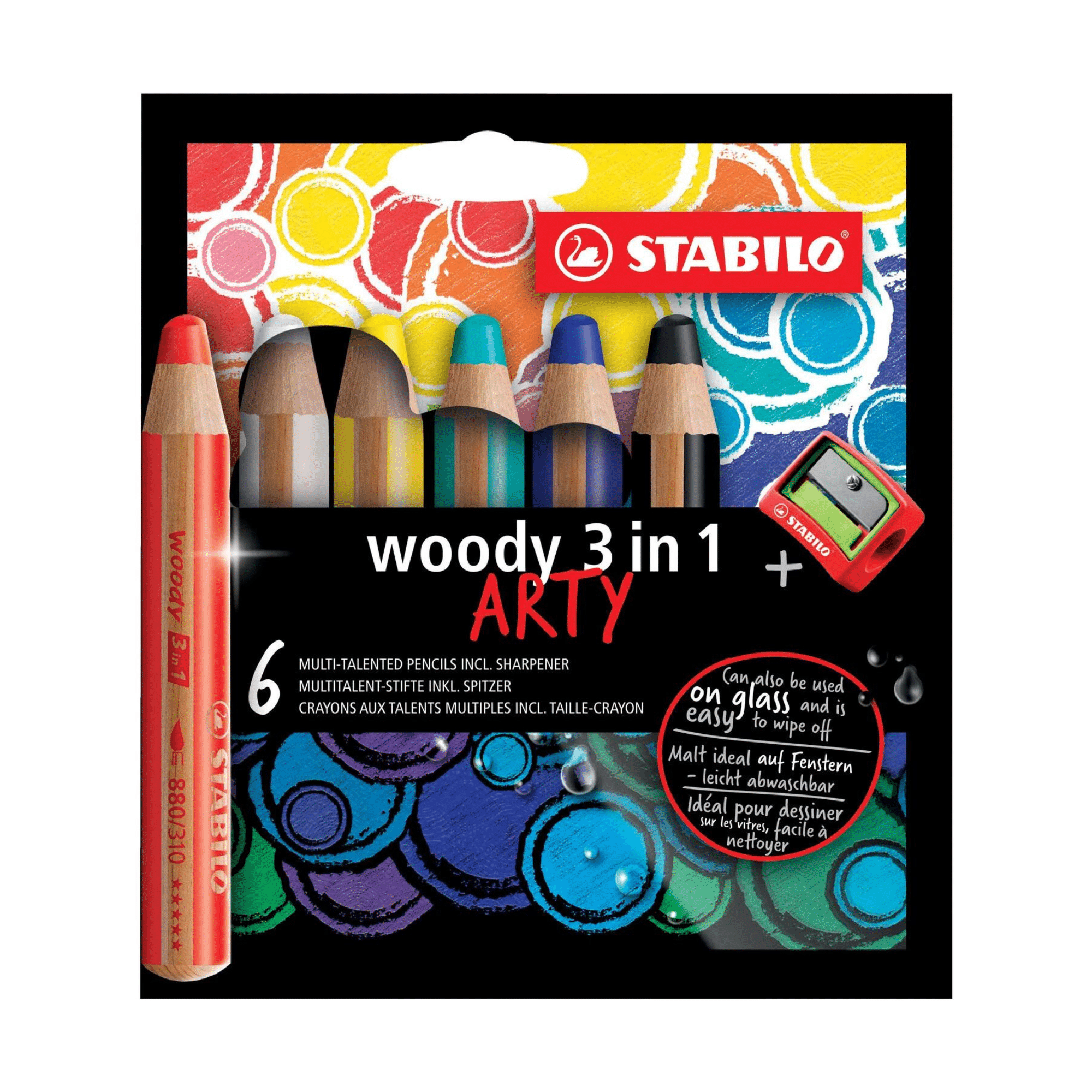 Lot de 6 crayons STABILO Woody ARTY 3 in 1 + taille-crayon adapté