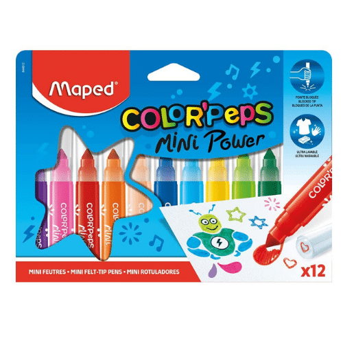 Lot de 12 mini feutres ultra lavables – Color’Peps Mini Power by MAPED